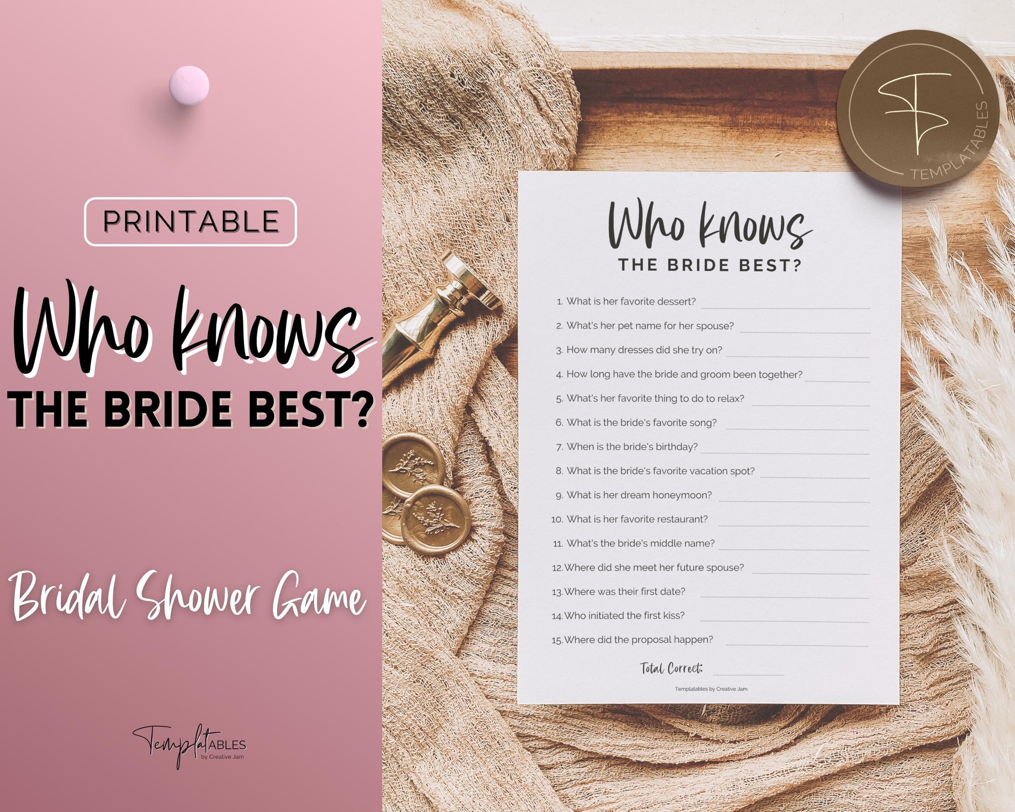 Who Knows the Bride Best Printable Bridal Shower Game Modern Wedding