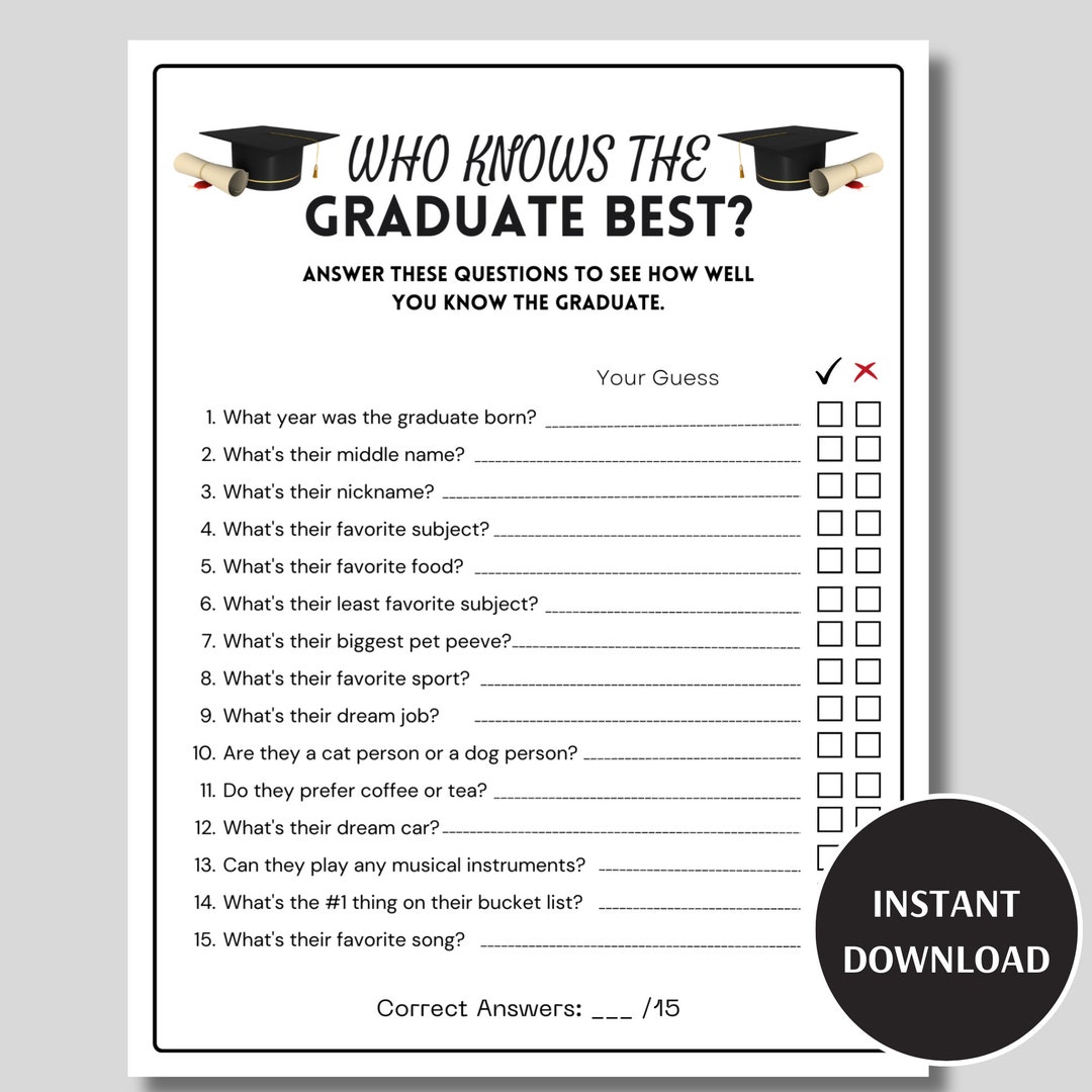 Printable Who Knows The Graduate Best Graduation Party Game Instant