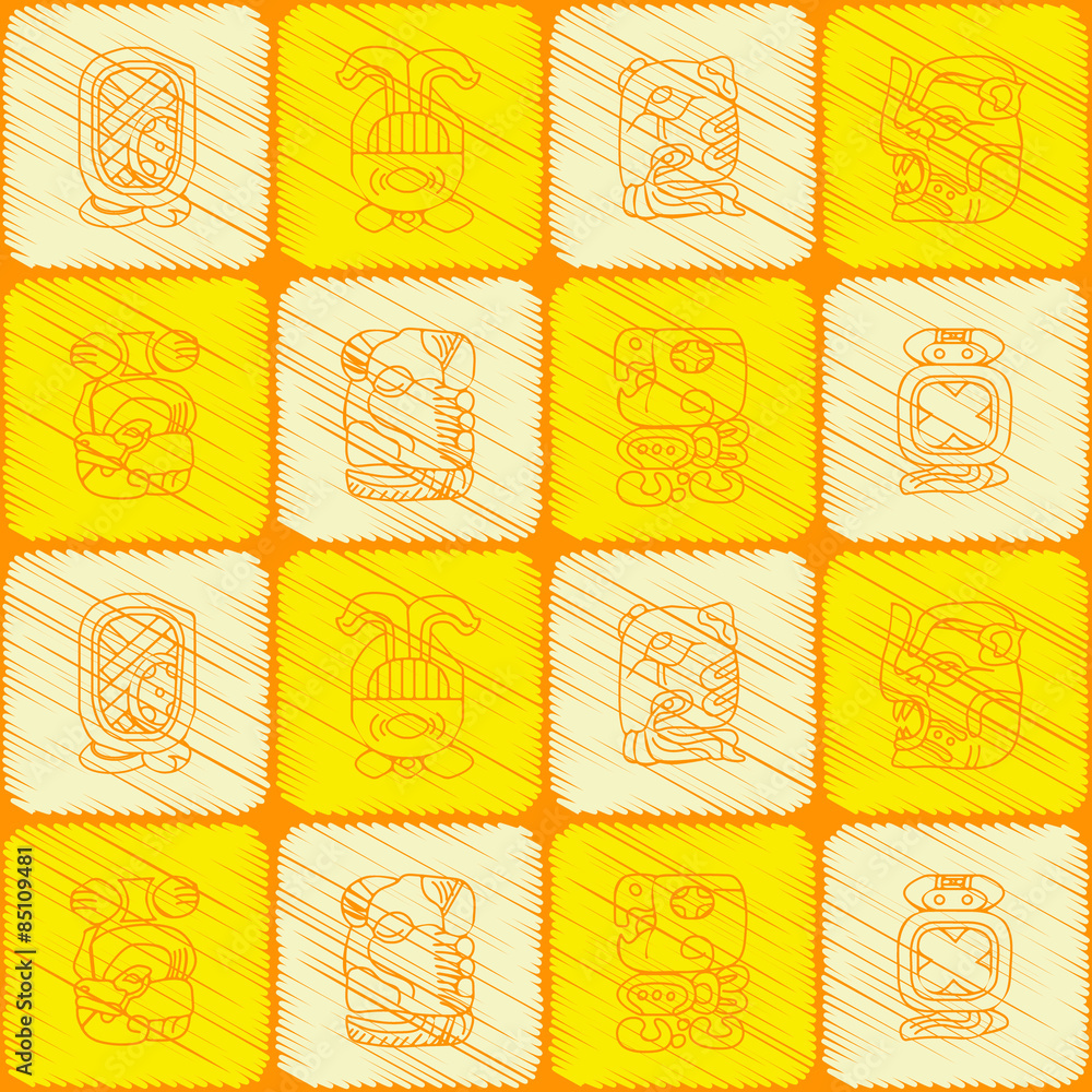 Seamless background with Maya calendar named months and associated