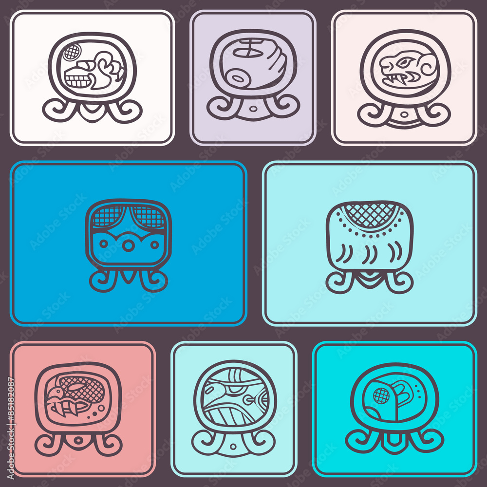 Haab Maya Calendar Named Months and Associated Glyphs Stock Vector