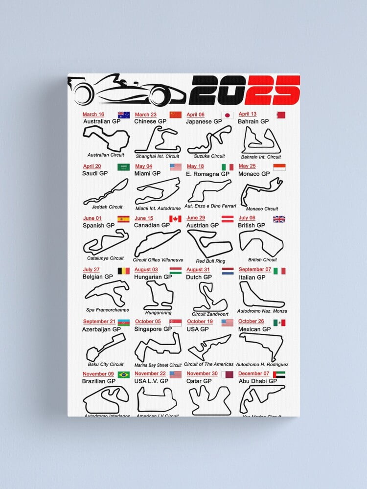 AatoeaX Calendar Formula race cars 2025 named circuits white Canvas
