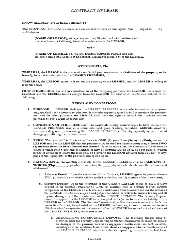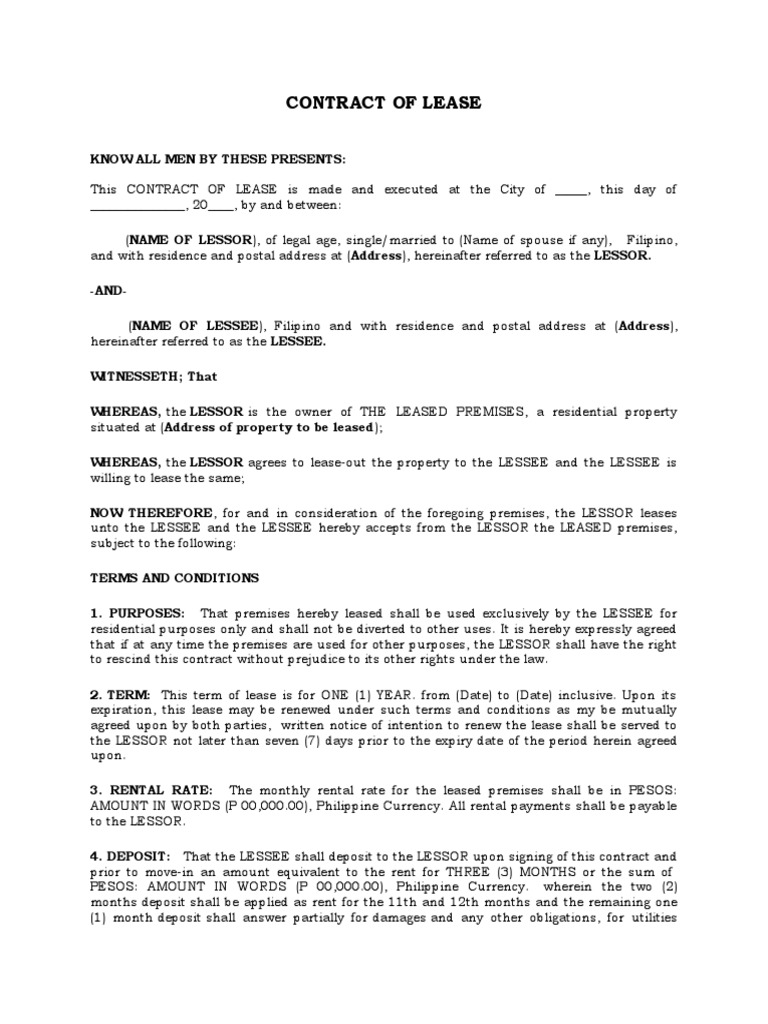 Sample Contract of Lease PDF Lease Law Of Obligations