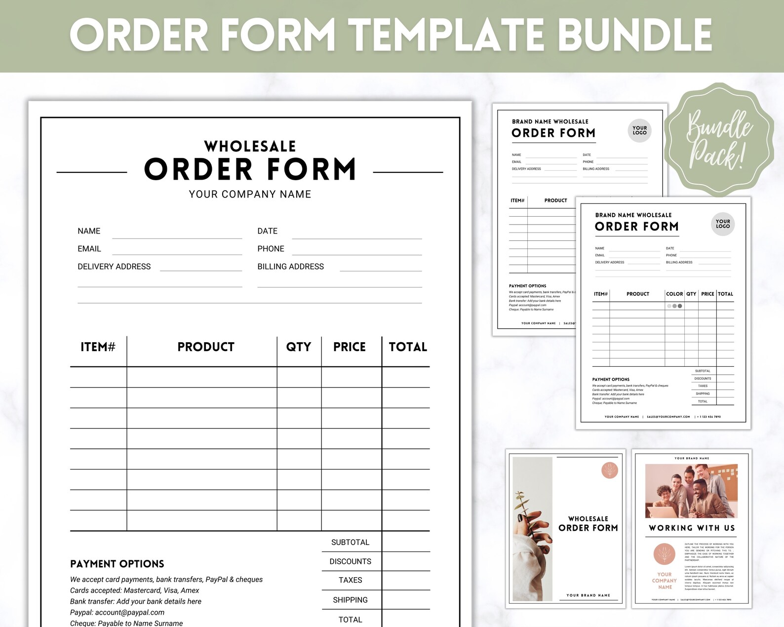 Wholesale Order Form Order form template Word template Purchase