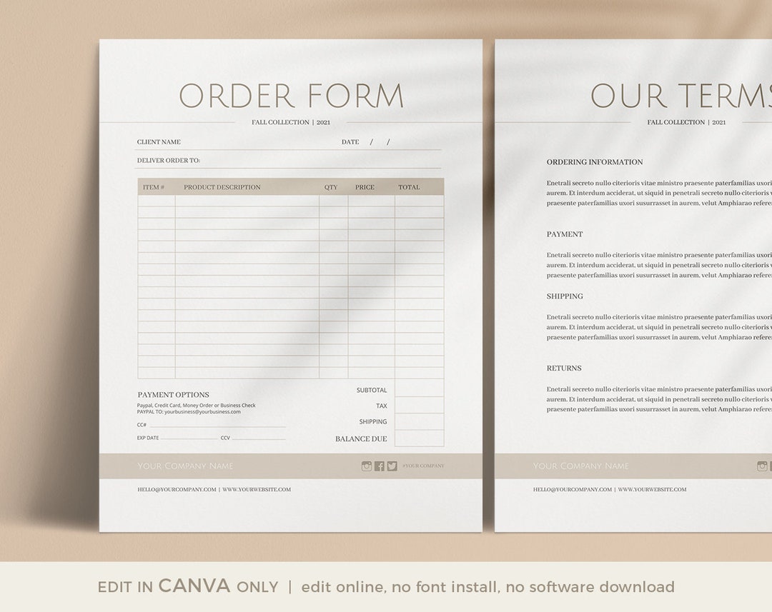 Wholesale Order Form Template Editable Canva Template Etsy Italia