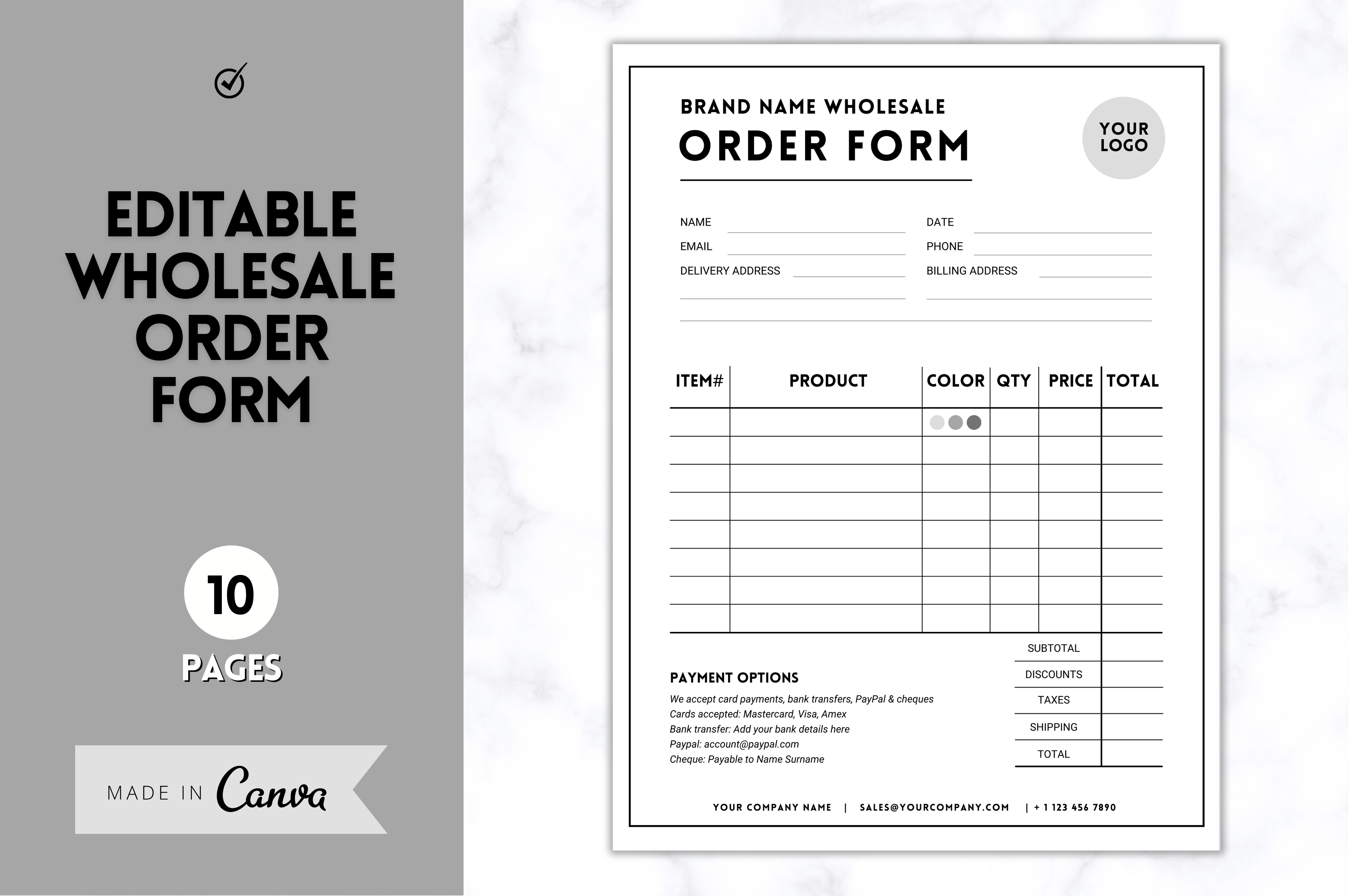 Wholesale Order Form Template CANVA Creative Market