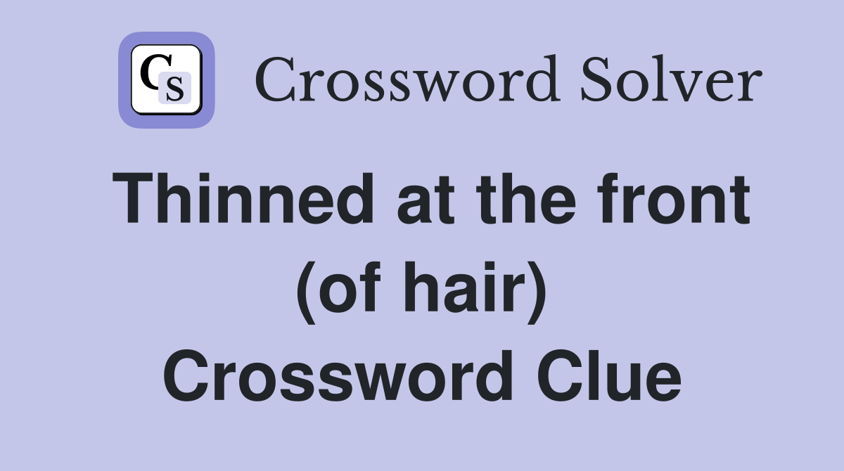 Thinned at the front (of hair) Crossword Clue Answers Crossword Solver