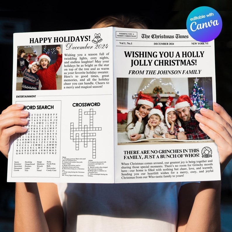 Christmas Newspaper Template Editable Christmas Card Template Holiday