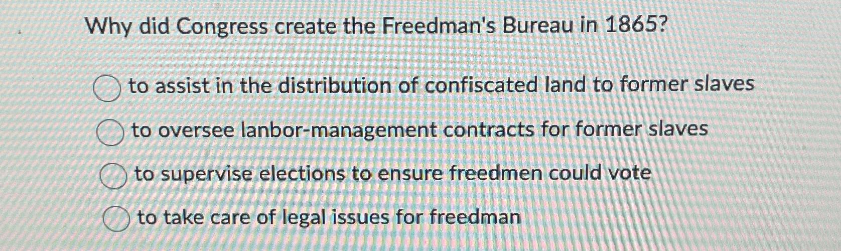 Solved Why did Congress create the Freedman #39 s Bureau in Chegg com
