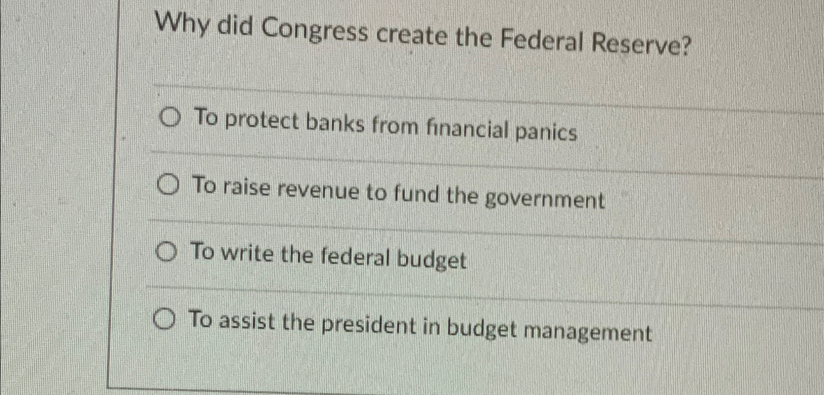 Solved Why did Congress create the Federal Reserve?To Chegg com