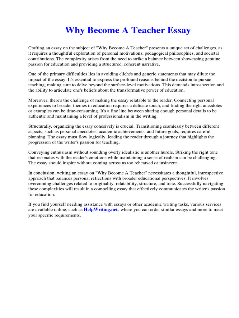 Why Become A Teacher Essay PDF Essays Violence