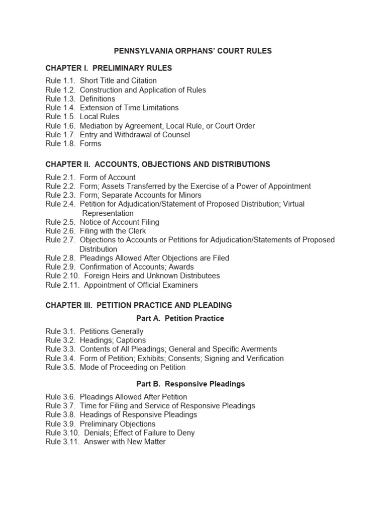 Pennsylvania Orphans #39 Court Rules