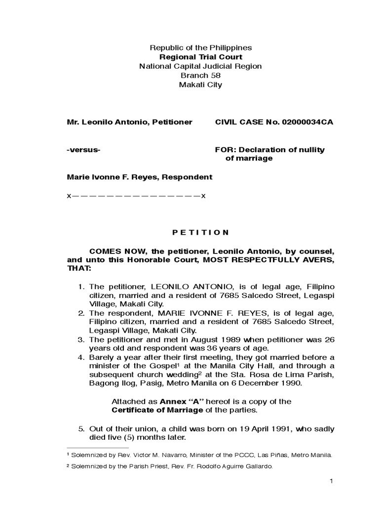 Sample Petition PDF Marriage Burden Of Proof (Law)