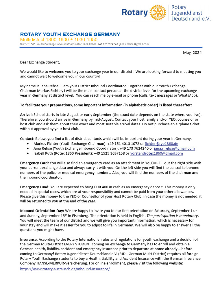 Welcome Letter District For German Inbounds 1860 2024 2