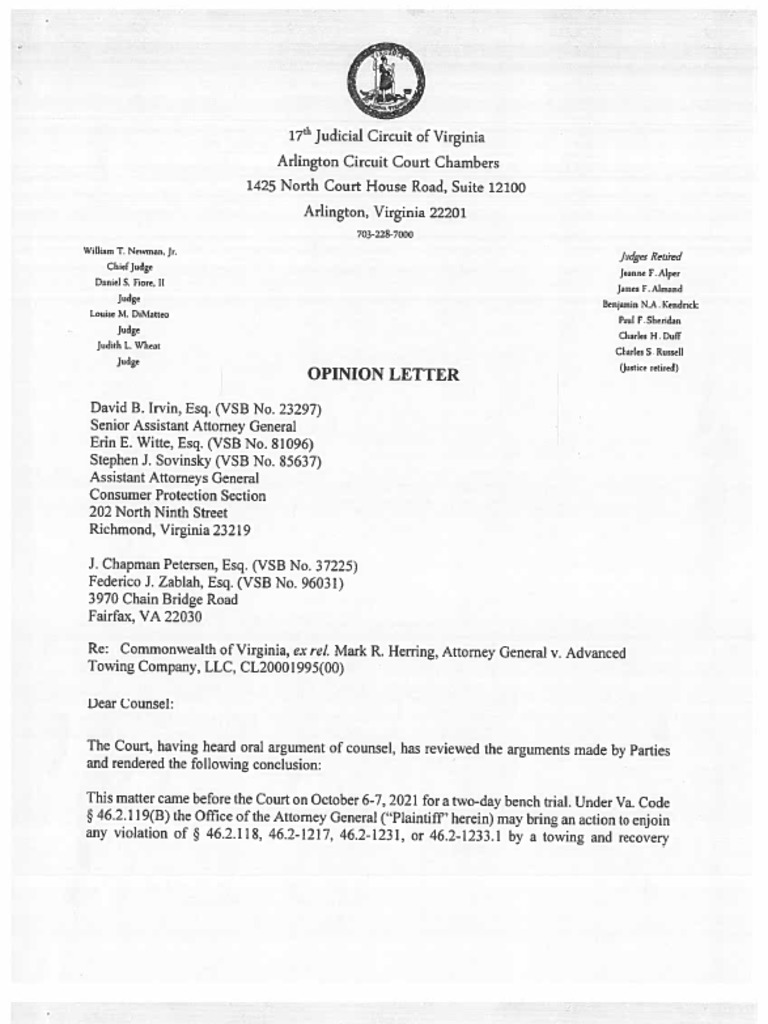 Opinion Letter From Arlington Circuit Court Judge PDF