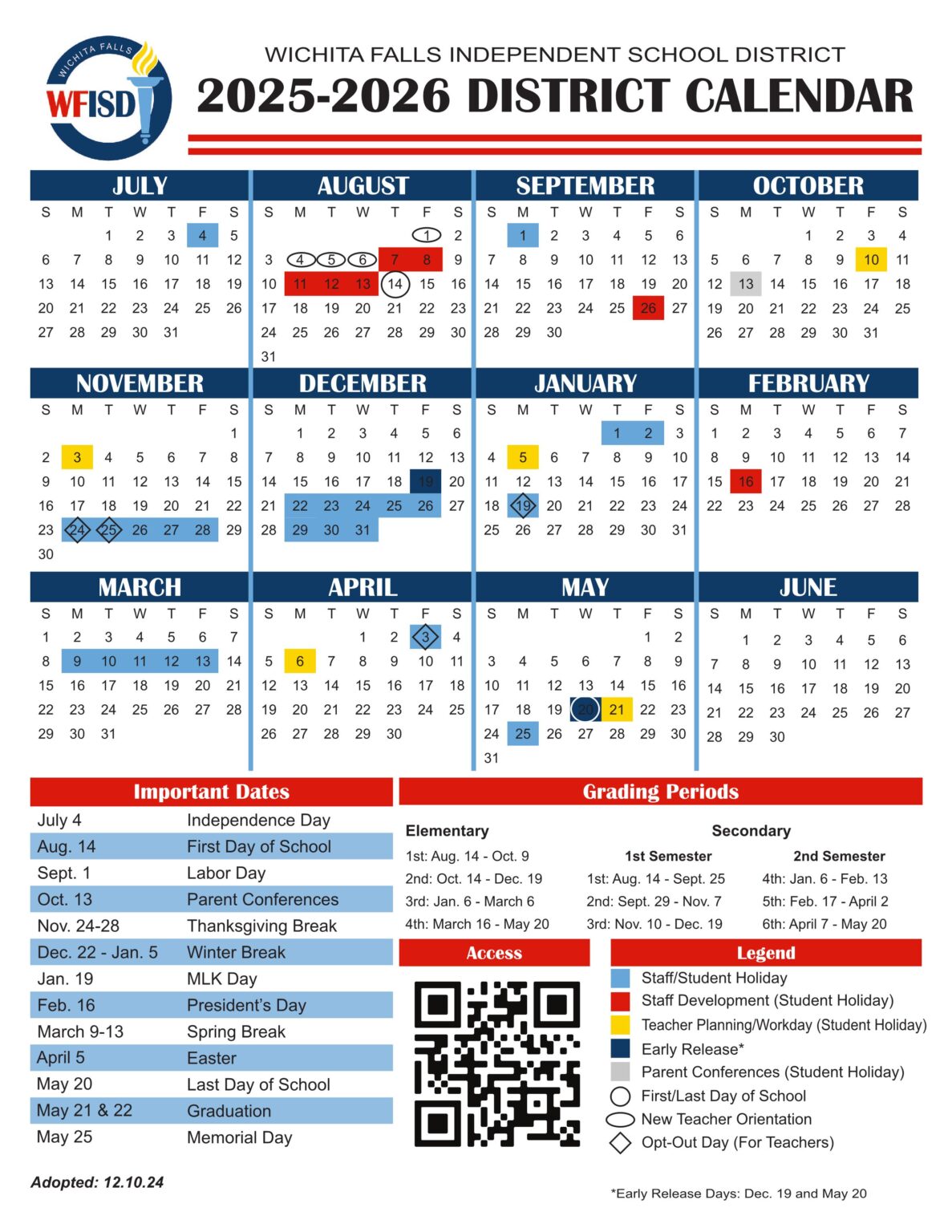 Wichita Falls ISD School Calendar 25 26 Revised PDF EduCounty
