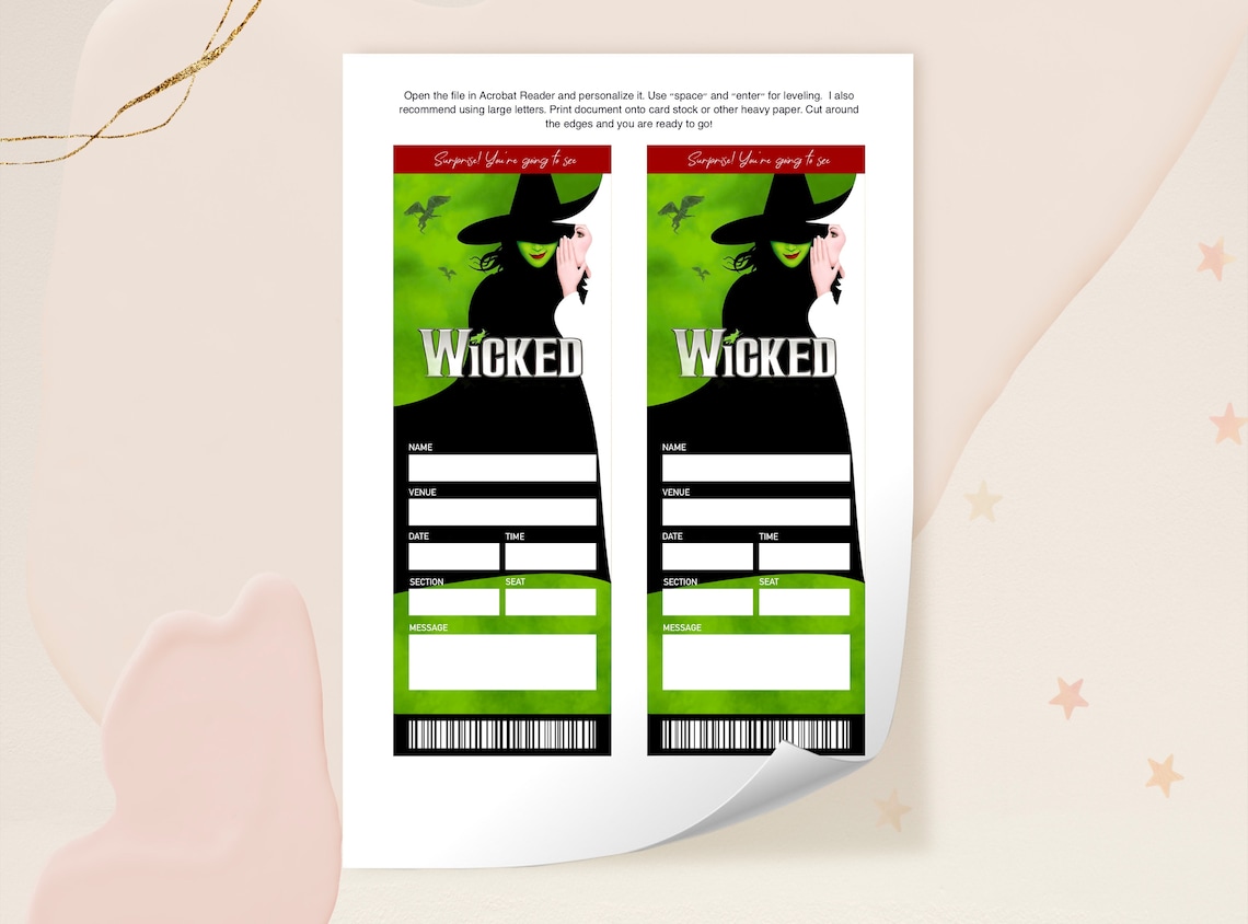 Printable wicked ticket editable wicked ticket musical fake surprise