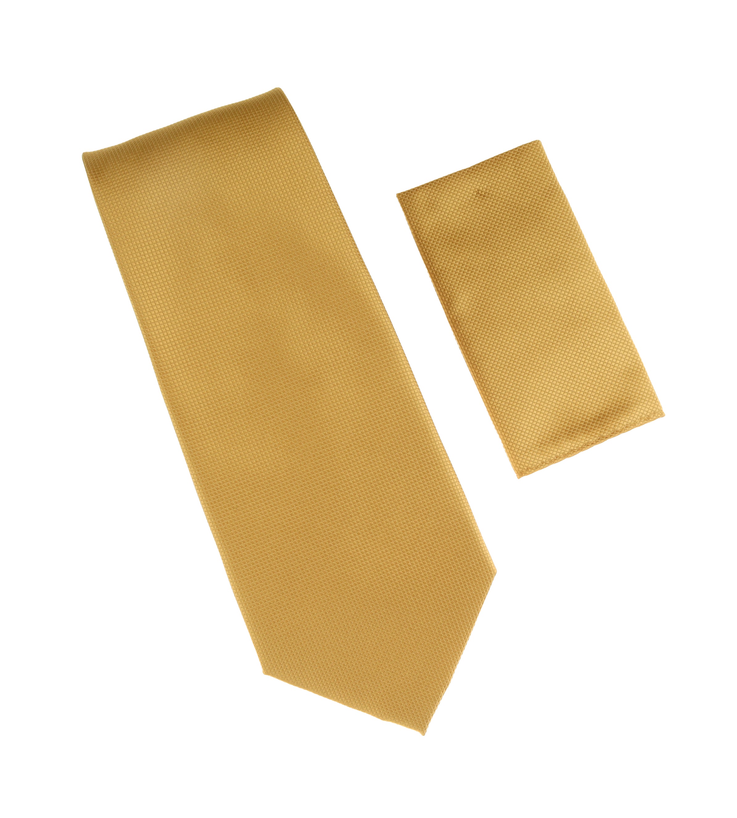 *Inventory Sale Gold Silk Wide Necktie with Matching Pocket Square S