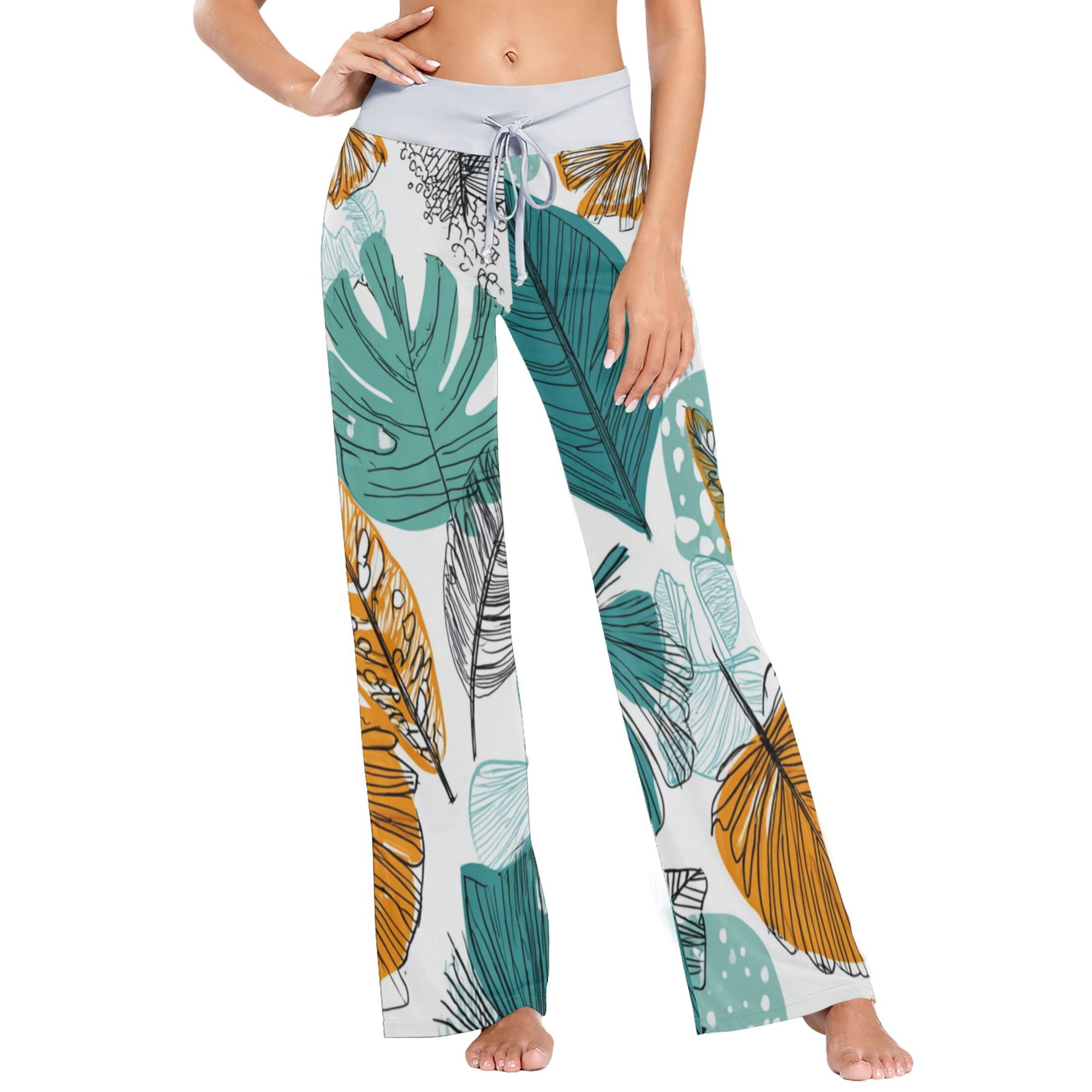 Comfy Casual Women #39 s Pajama Floral Print Wide Leg Pants Vector Designs
