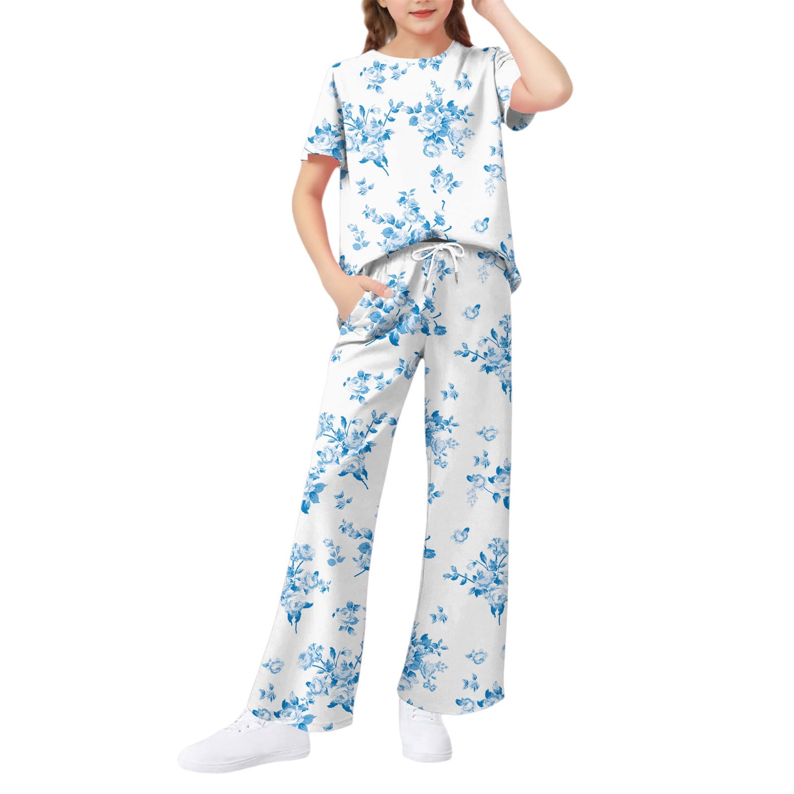 Abcomgle Girls Summer Outfits 4 16 Floral Print Short Sleeve Shirts and