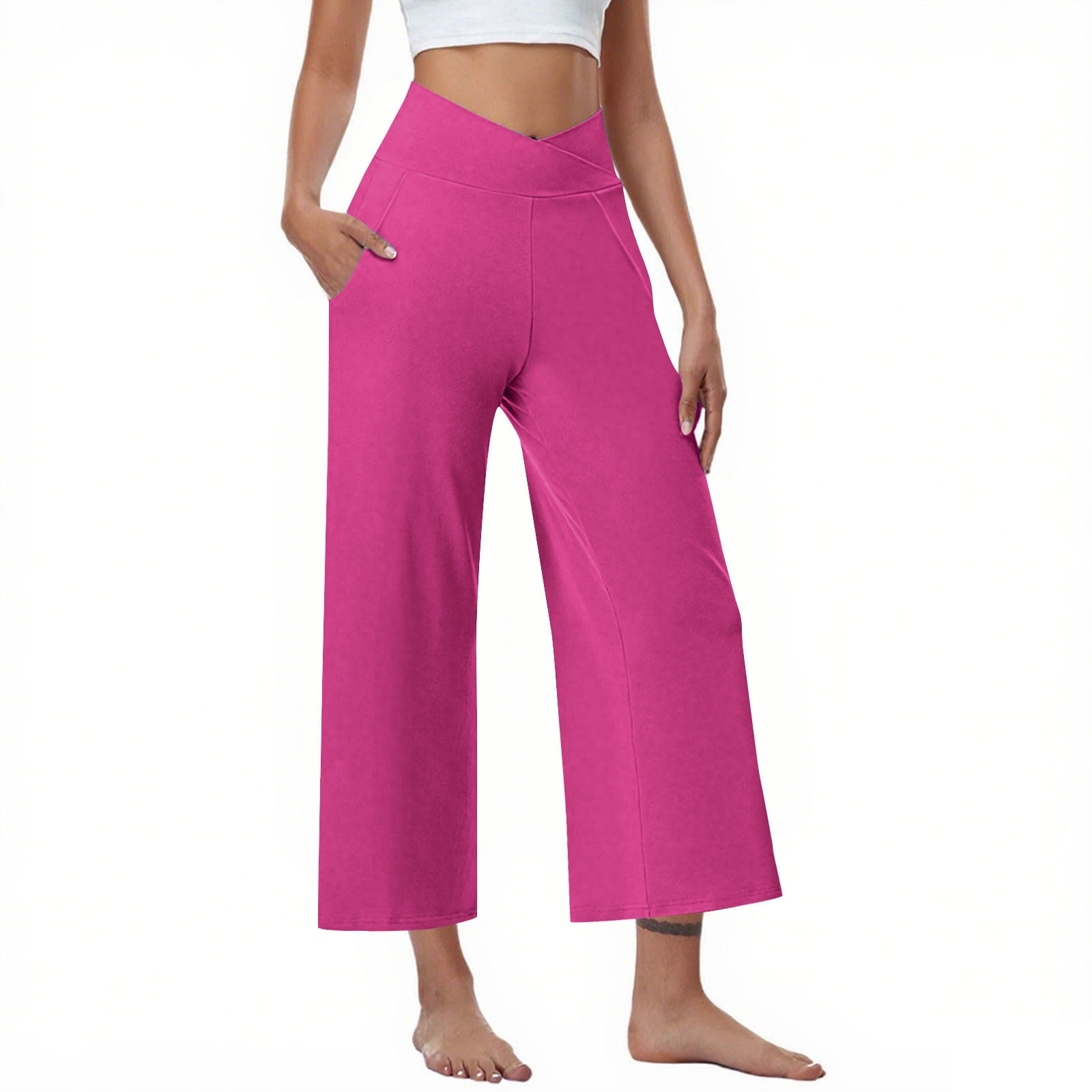 BLVB Women #39 s Wide Leg Yoga Pants Crossover High Waist Casual Stretchy