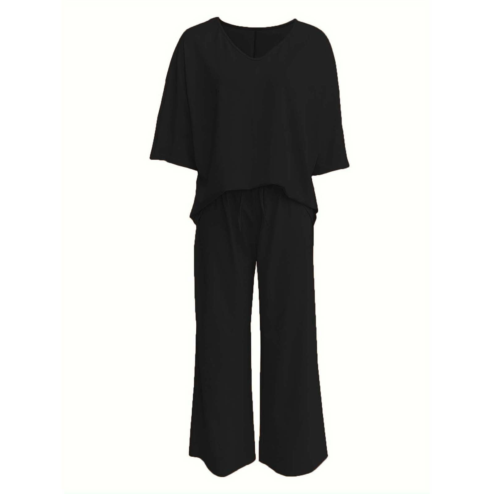 Delliss Women V Neck Batwing Sleeve T Shirt Matching Casual Loose Wide
