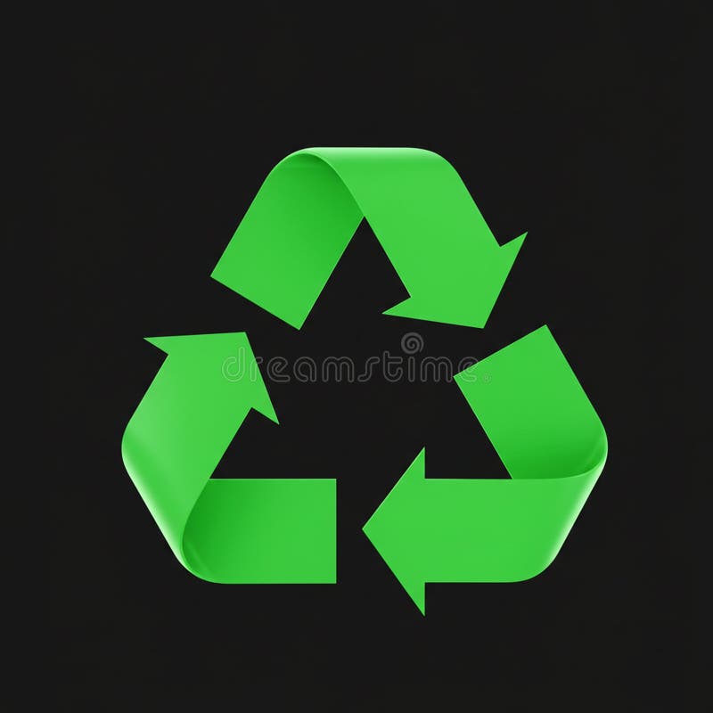 The Image Features a 3D Green Recycling Symbol on a Black Background