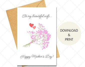 Printable Wife Mothers Day Card Happy Mother #39 s Day to My Amazing Wife