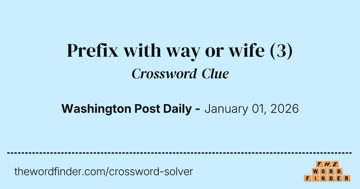 Prefix with way or wife Crossword Clue