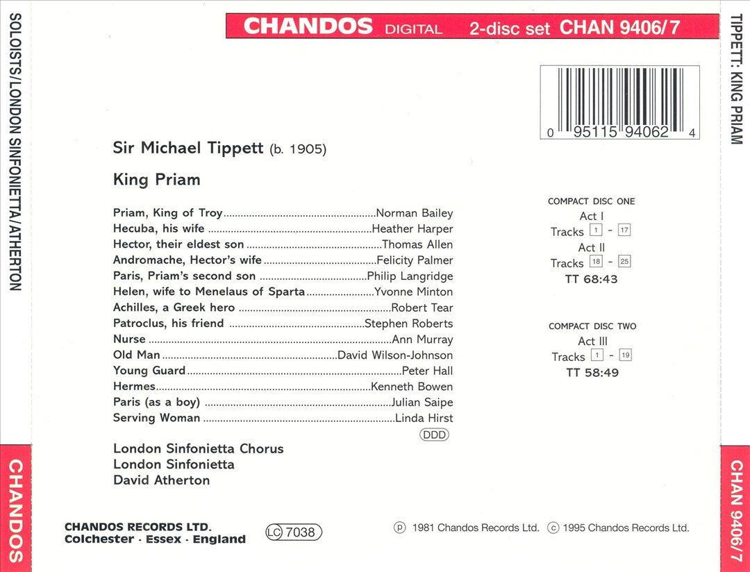 DAVID ATHERTON / LONDON SINFONIETTA TIPPETT: KING PRIAM NEW CD