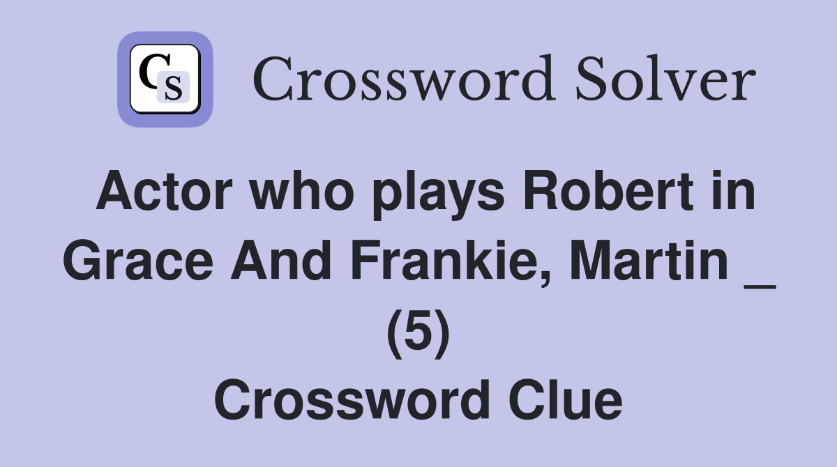 Actor who plays Robert in Grace And Frankie Martin (5) Crossword