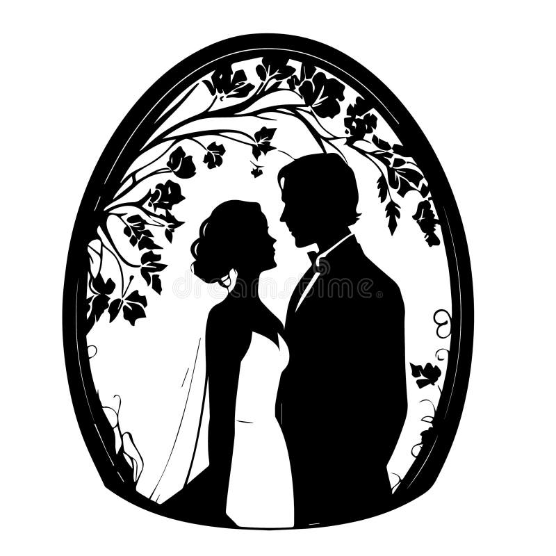 Wedding Young Couple of Lovers Just Married Black Vector Stencil