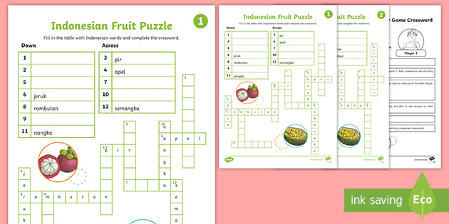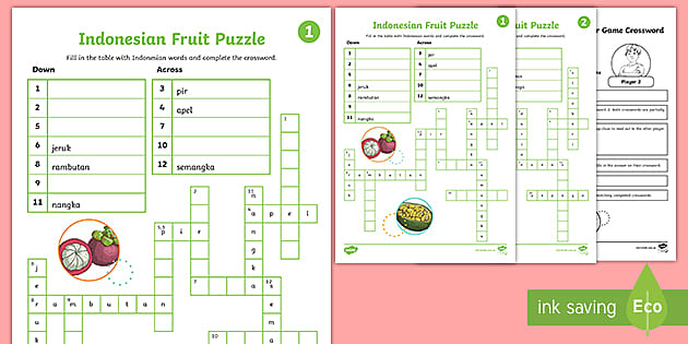 Indonesian Fruit Barrier Crossword (teacher made) Twinkl
