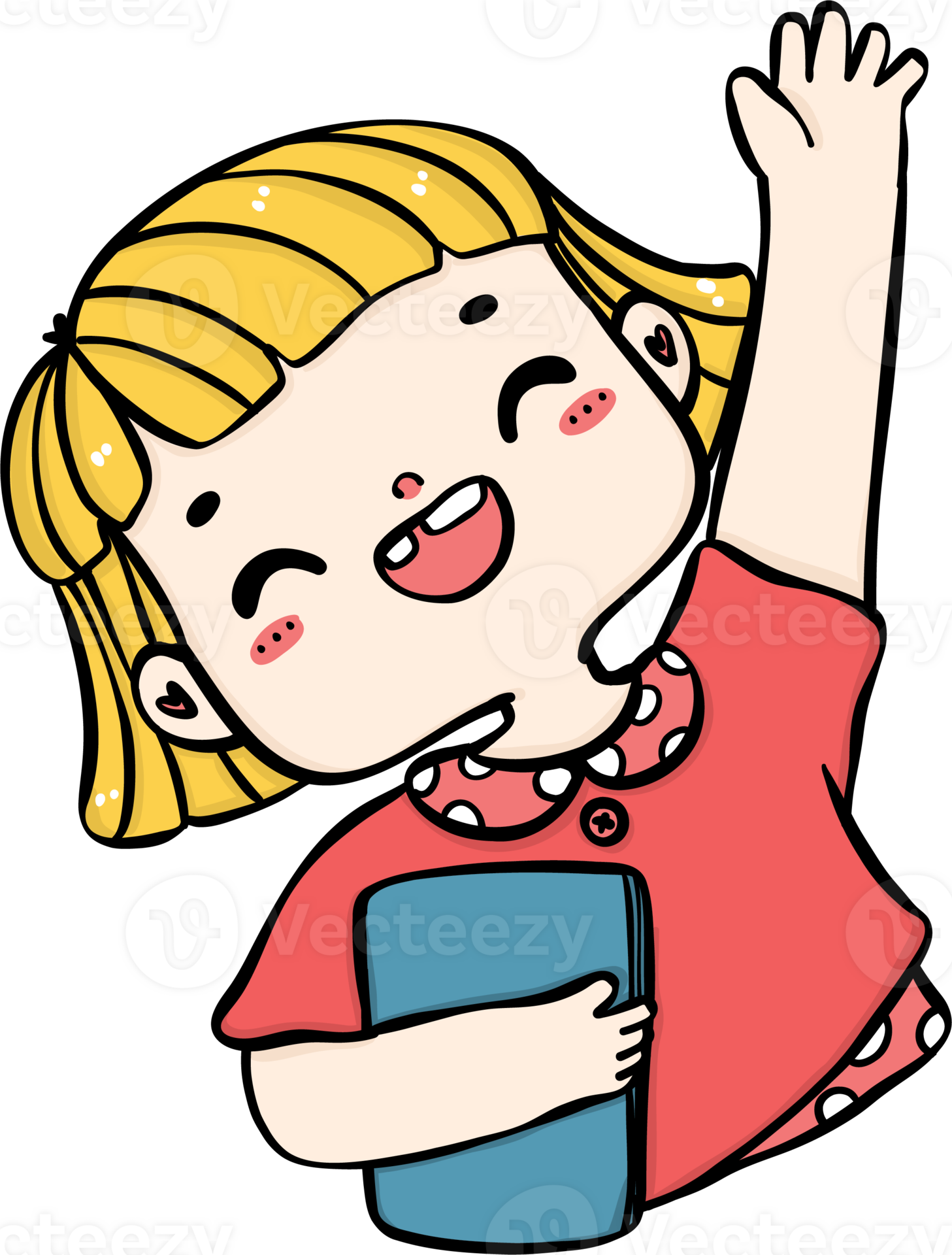 Cheerful happy Student girl willing to answer vibrant cartoon Doodle