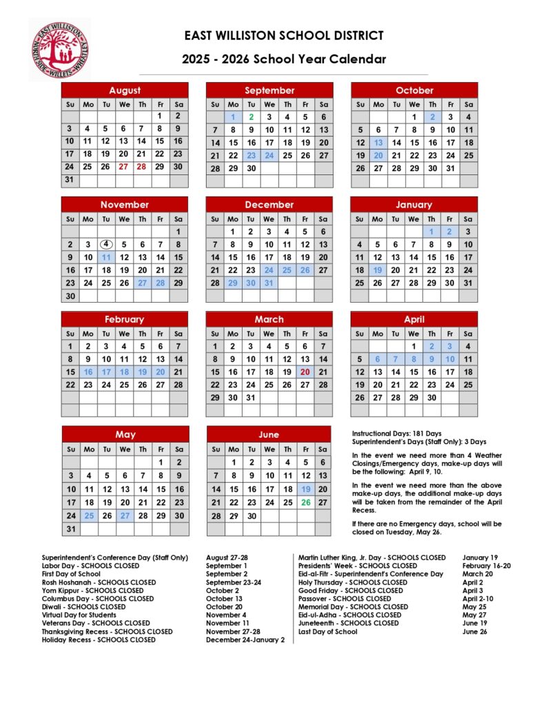 EWSD East Williston School Calendar 25 26 revised pdf EduCounty