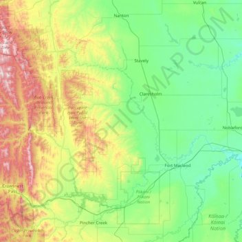 Municipal District of Willow Creek No 26の地形図、標高、地勢