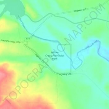 Willow Creek Provincial Parkの地形図、標高、地勢