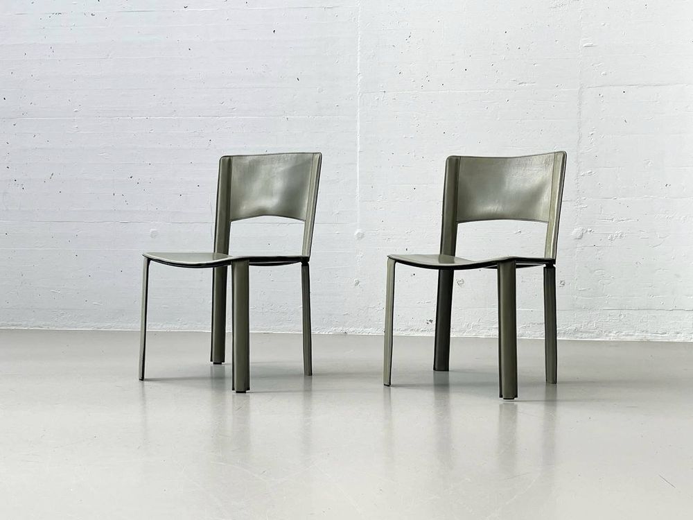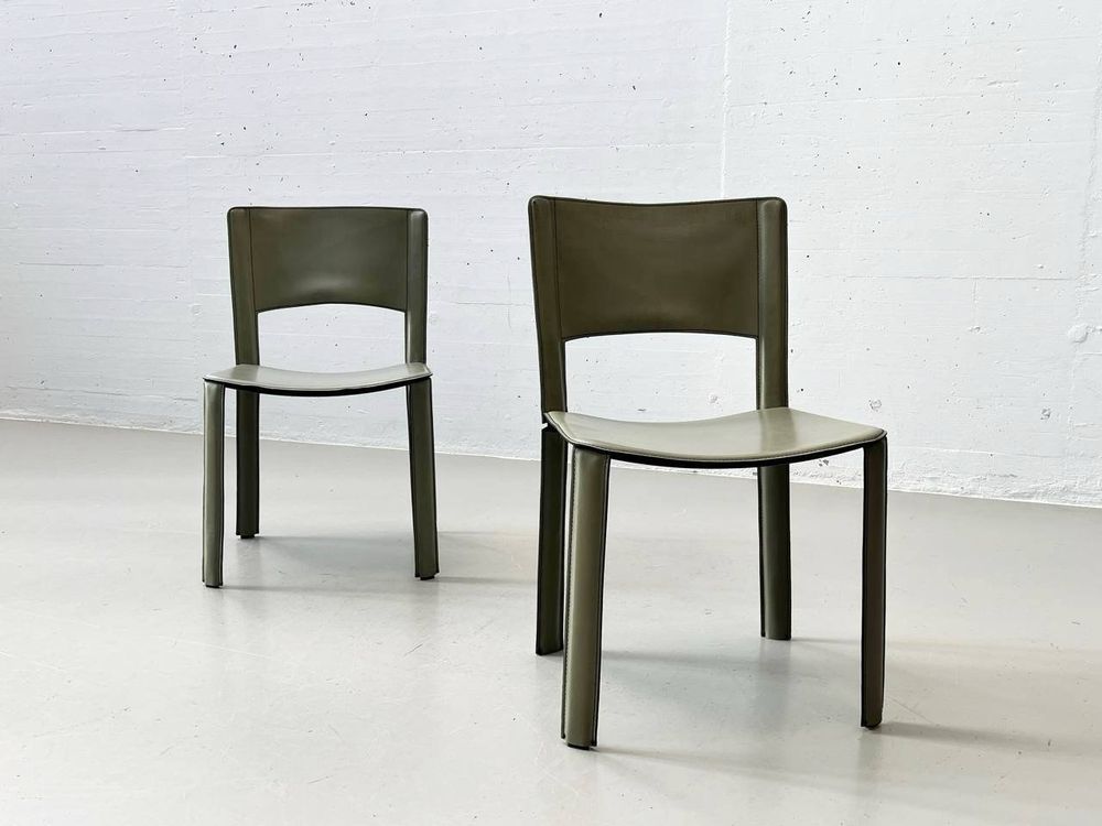 Sattel Lederstühle olivegrün von Willy Rizzo für Cidue (Gebraucht) in
