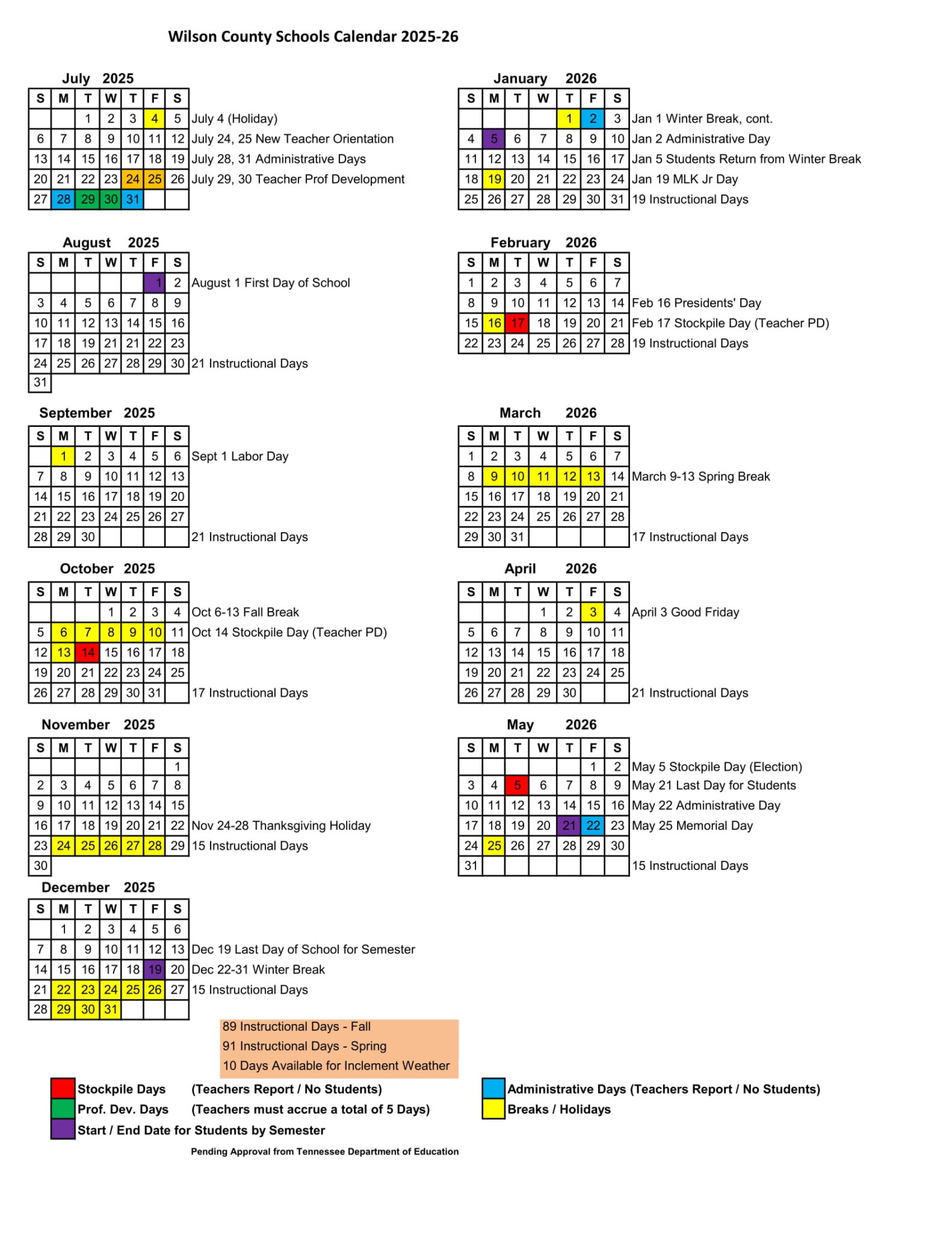 Wilson County Schools Calendar 2025 2026 Printable