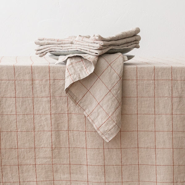 Linen Napkin Natural with Brick Window Pane Material Wit