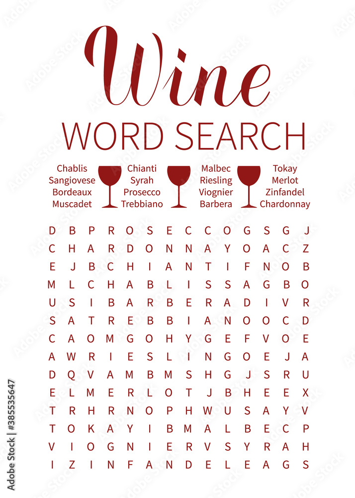 Wine word search puzzle Wine tasting party game Vineyard wedding or