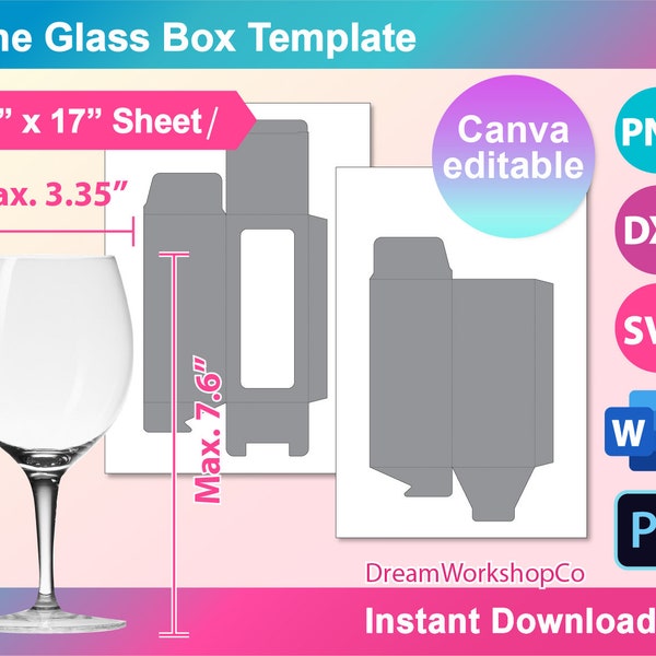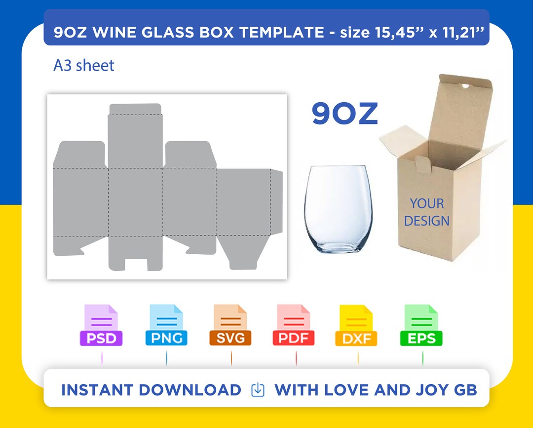 9oz Wine Glass Box Template Sublimation Ms Word PSD PNG Etsy