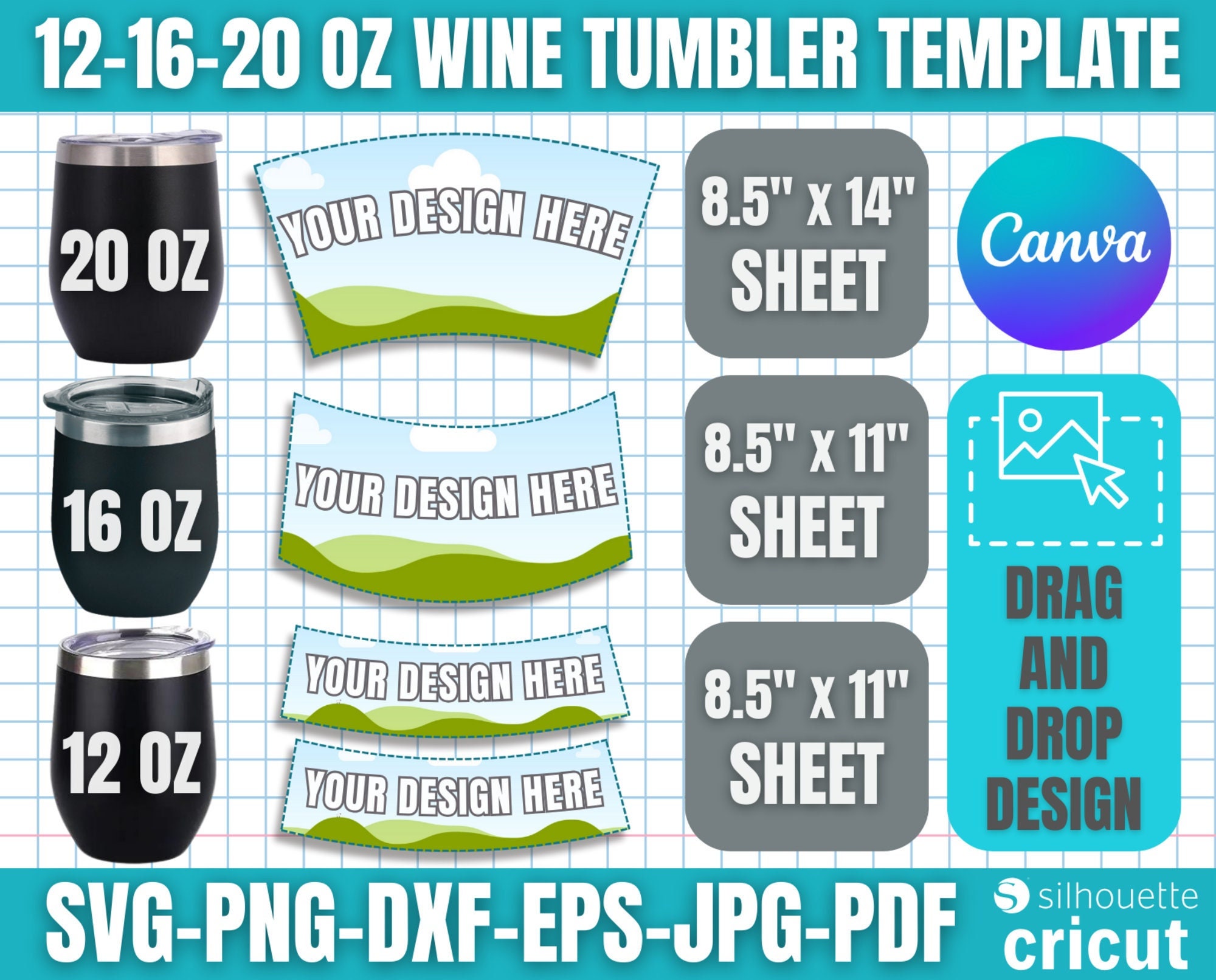 12oz Wine Tumbler Template Sublimation Ms word PSD PNG Etsy