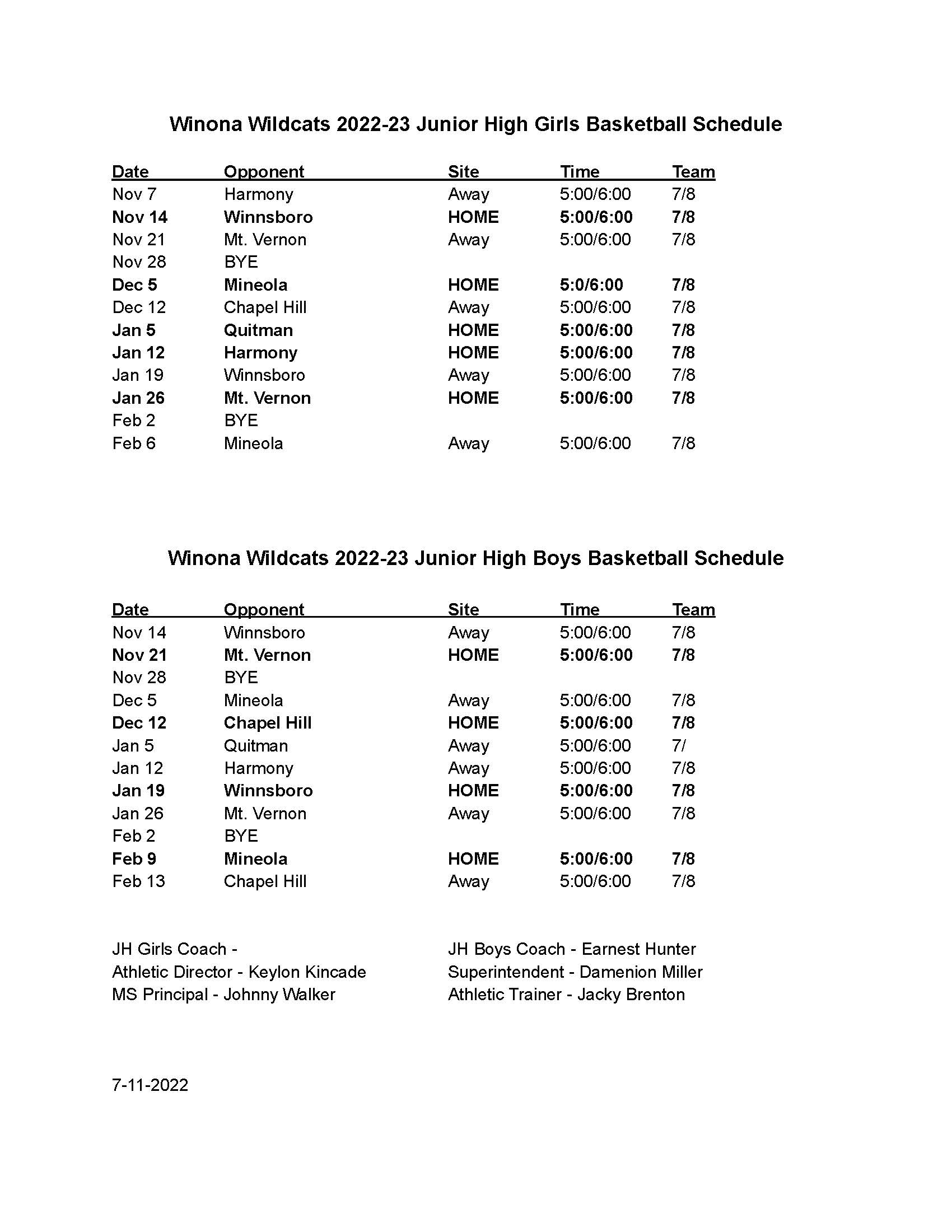 Basketball Winona ISD