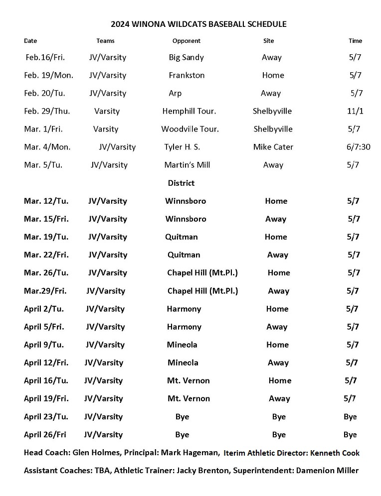 Baseball Winona ISD