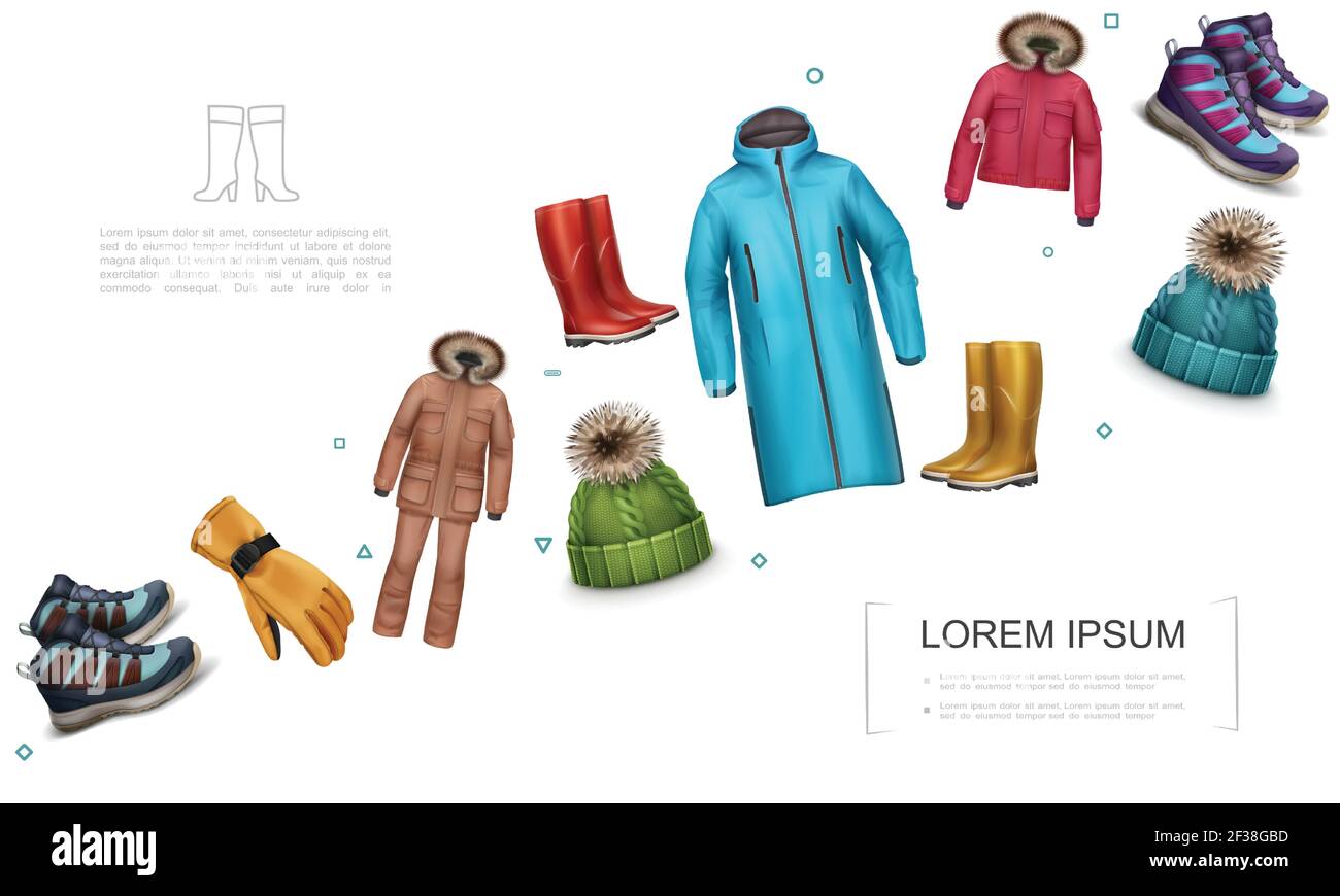 Realistic winter and autumn clothes template with jacket trousers