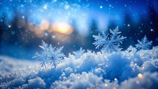 Snowflake on Sparkling Snow with a Bokeh Background the Beauty of