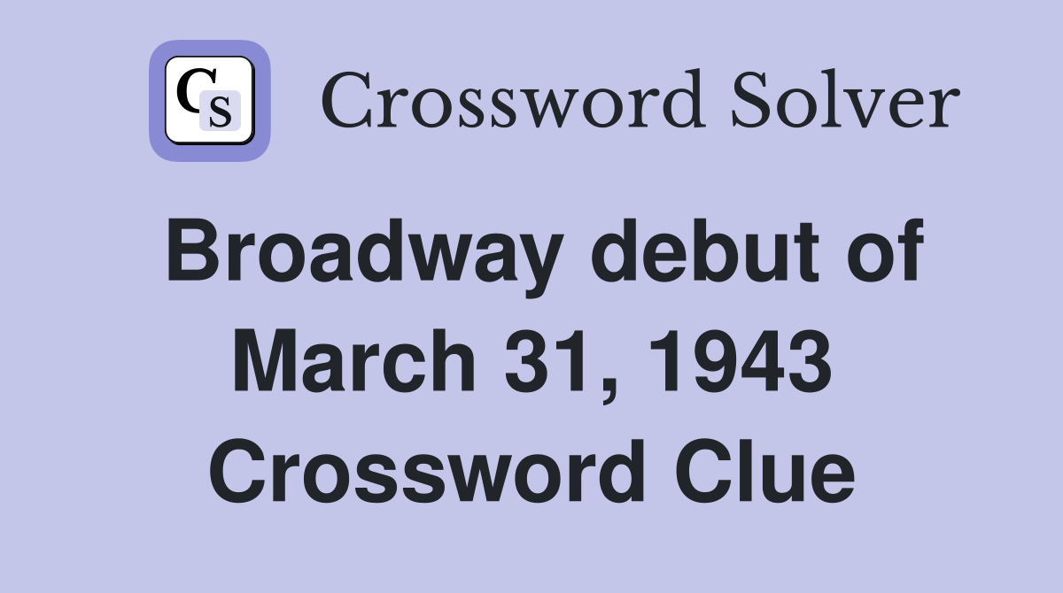 Broadway debut of March 31 1943 Crossword Clue Answers Crossword
