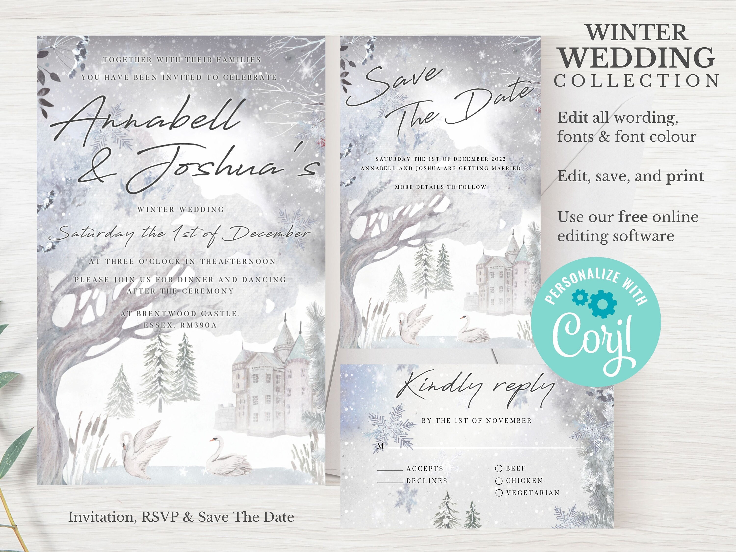 Winter Wedding Invitation Template Printable DIY Template APRIL Etsy