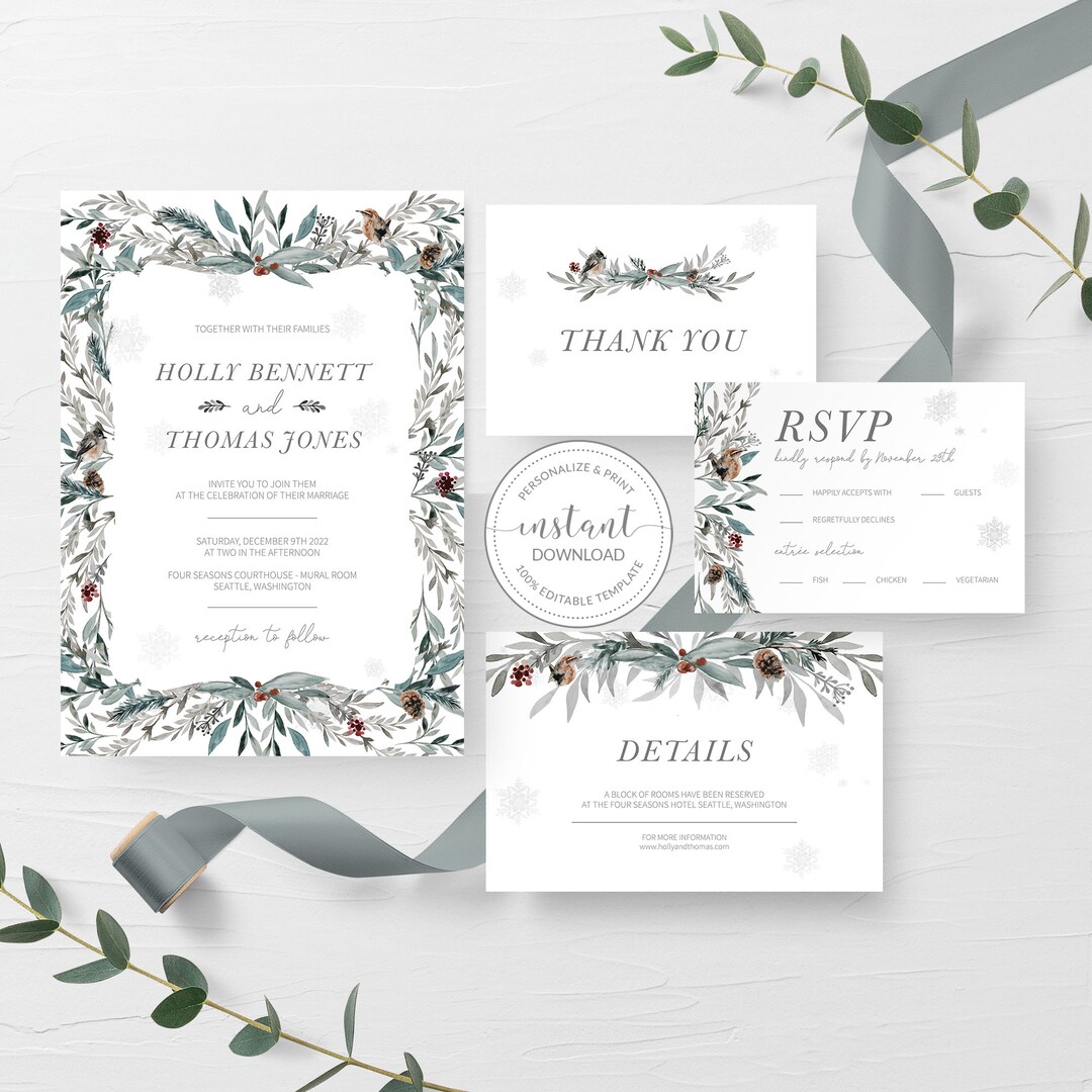 Winter Wedding Invitation Template Christmas Wedding Invitation Suite