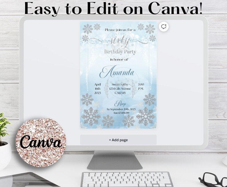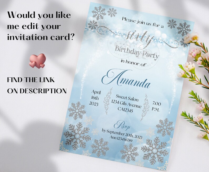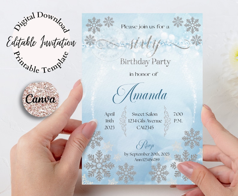 Editable 60th Birthday Invitation Winter Wonderland Template Etsy
